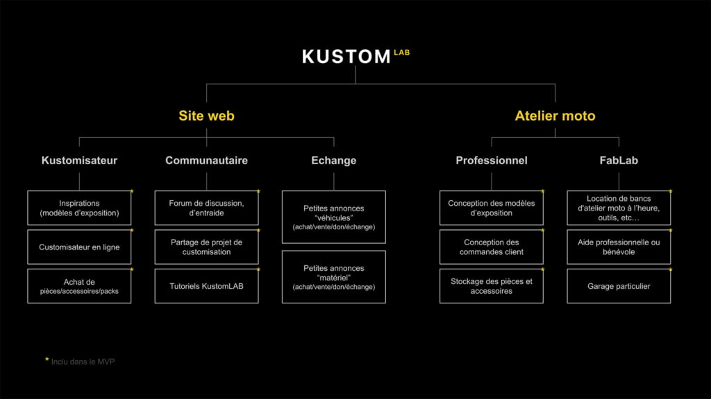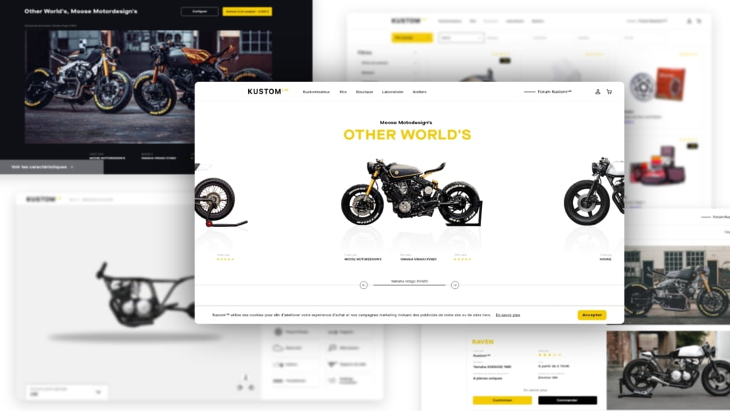 Il existe des centaines de sites e-commerce d’accessoires moto mais aucun d’entre eux ne permet de vivre une réelle expérience en ligne. C’est pourquoi nous avons créé KustomLAB, une plateforme digitale ayant pour mission d’améliorer l’expérience de customisation dans l’univers du 2 roues.