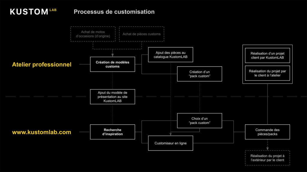 KustomLAB est un un préparateur moto “digital“ ayant pour mission d'améliorer l’expérience de customisation dans l’univers du 2 roues.